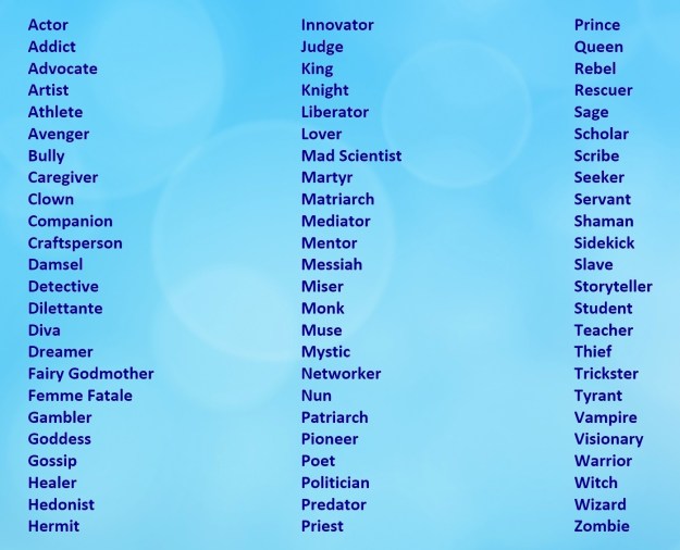 - Review the accompanying list of archetypes. Yes, the one on the blue background there.