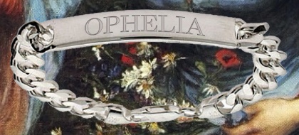 Apologies for the song’s somber-sounding final line (“I’ll wear this silver bracelet when I’m dead”), but Ophelia drowns in the end, after all. When she attempts to hang floral wreaths on a willow growing over a brook, the branch she is grasping (or standing on) breaks, and she falls into the water. As she sinks, she chants “snatches of old tunes,” perhaps one like this, about her rotten (in the state of Denmark) boyfriend.